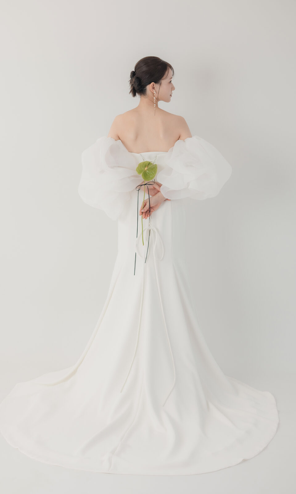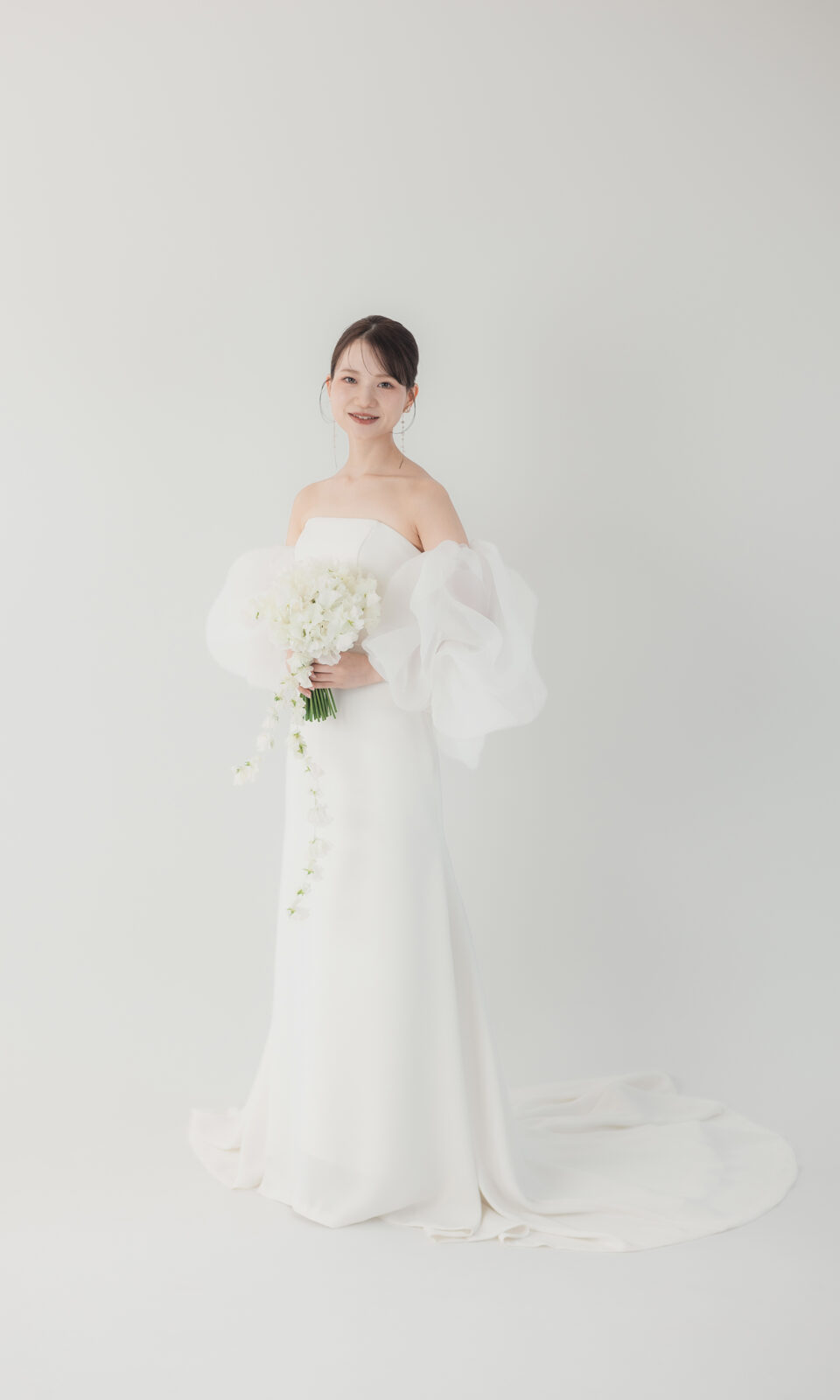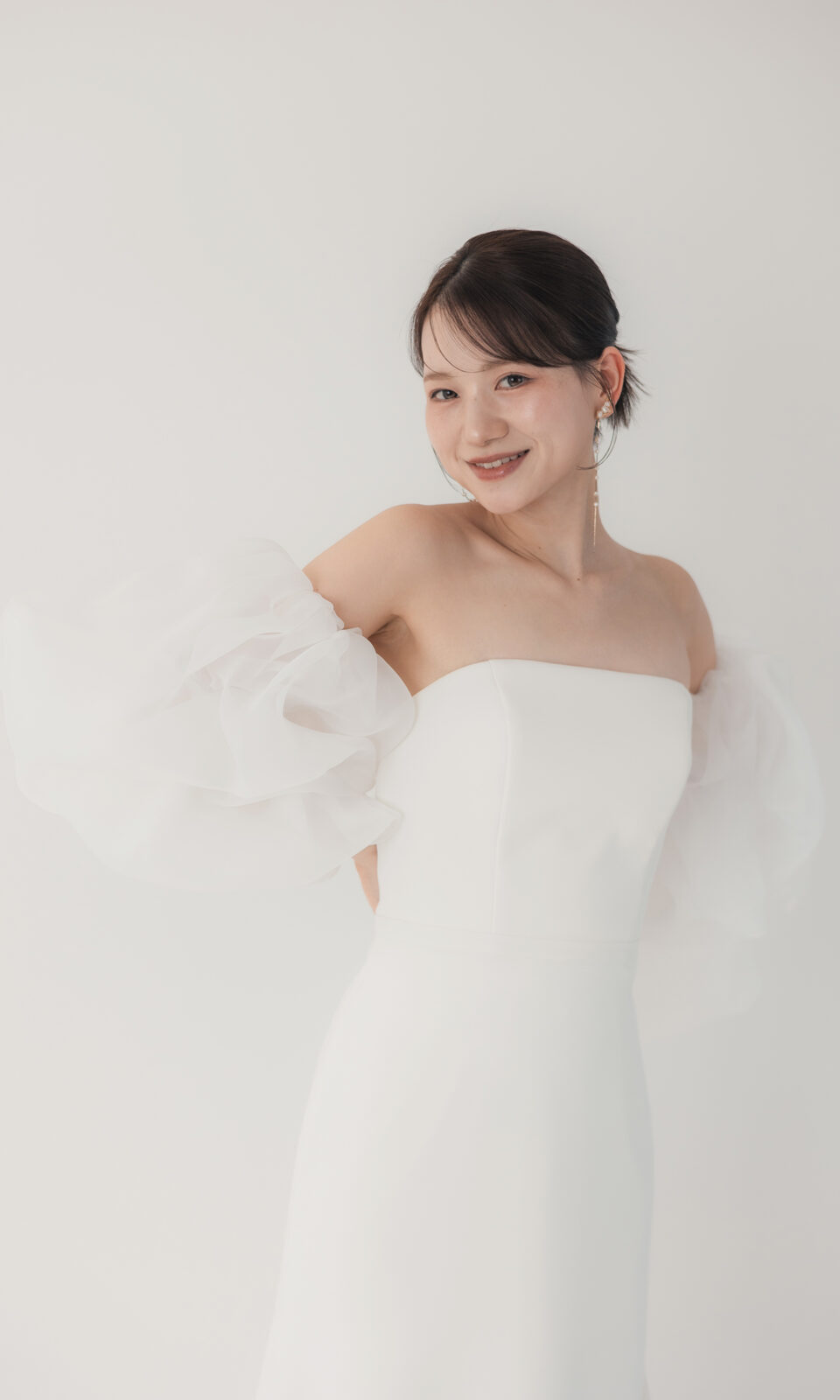 2026/01/22 Bell [dress-001] シンプルの中に自由な表情を。スリーブやトップのアレンジ次第で5通りの着こなしが叶うマルチウェイドレスです。オフショルダーで女性らしく、ボリュームチュールで華やかに、取り外してすっきりとした洗練スタイルにも。 『シンプル・可愛さ』どちらも大切にしたい花嫁様へ。